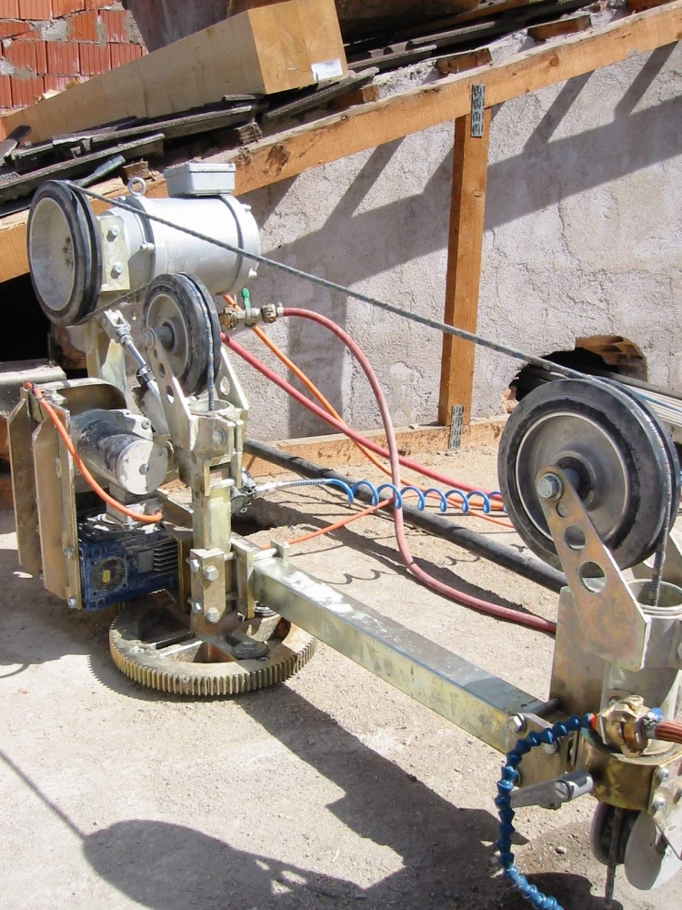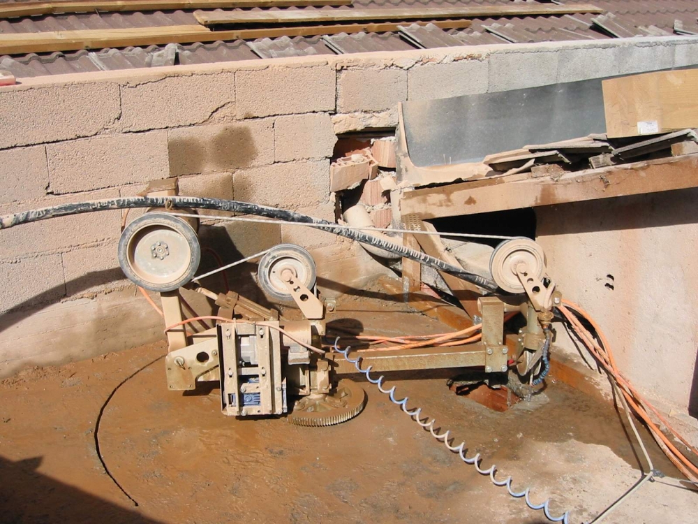 Compania noastra detine una dintre cele 10 masini unice in Europa, capabile sa taie rotund diametre de goluri mari de peste 50 cm, pana la 550 cm, la adancime de maxim 550 cm, prin intermediul metodei cu (filou) fir diamantat.